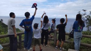 鴨ヶ磯の長い階段を、子どもたちは軽快に上り下りする中、