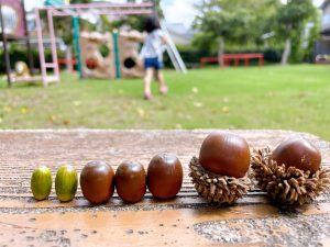 学園のグラウンドにもどんぐりが沢山落ちており、こすもすホームの子ども達と一緒に公園に行き、秋を見つけてきました!!