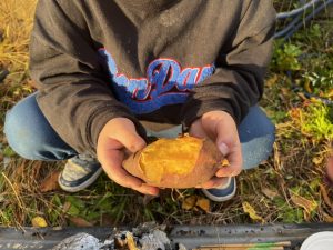 炭火を起こして焼く本格的な焼き芋パーティーで、じっくり火を1時間入れることでホクホクあまあまな焼き芋を作ることができました!!