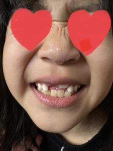 前歯が抜けてから約2ヵ月が経ち…大人の歯が顔を出してきました!