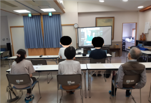 (↑遠隔でオンライン研修に参加してくれた会場の風景)